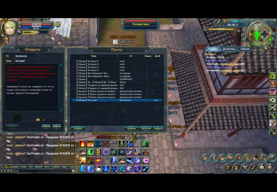 Заточка Предлагают научить точить шмотки на +6, но ничего в замен не просят. Идут к Старейшине в ГД. Просят переместить Миражи в первую ячейку инвентаря. Потом просят нажать Макс. Ничего не трогая дальше, поговорить с Старейшиной. Потом просят поменять местами миражи, и ту шмотки которую якобы хочется точить. Нажимаем ОК, и дивным образом в первой ячейке появляется вещь, с нулевой ценой, но полностью копируется описание той шмотки, которую мы поменяли местами с Миражами. Далее говорят, что типа за такое банят на протяжении 2х минут, и надо срочно избавится от этой багнутой шмотки, но ... когда вы выкидываете эту багнутую шмотку, то с вас слетает или Полет, или Пуха. Суть в том, что эта багнутая шмотка висит в инвентаре некоторое время. И пока вы её выкидываете, то с вас слетает всё подряд, всё что на вас одето...